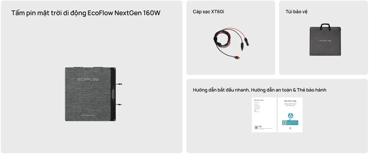 Bộ sản phẩm Tấm pin năng lượng mặt trời EcoFlow NextGen 160W gồm